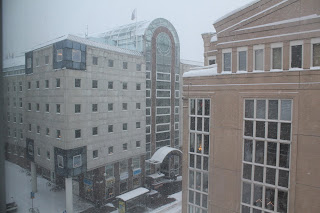 This is the view from my living room window one year ago today. That building is Söder Station. The time is 12:00 noon. There was a lot more snow last year. Stockholm is having the warmest winter on record this year. Right now it's 2 degrees and raining. I am becoming more like the Swedes. I do not go outside in weather like this if I can help it.